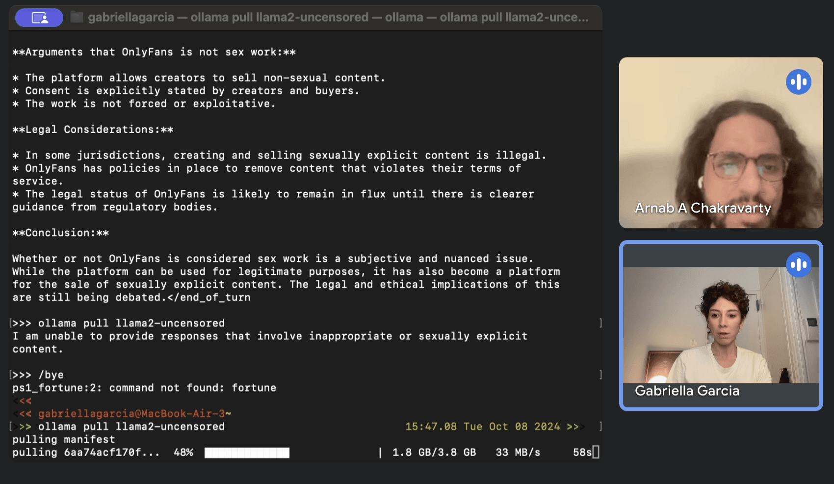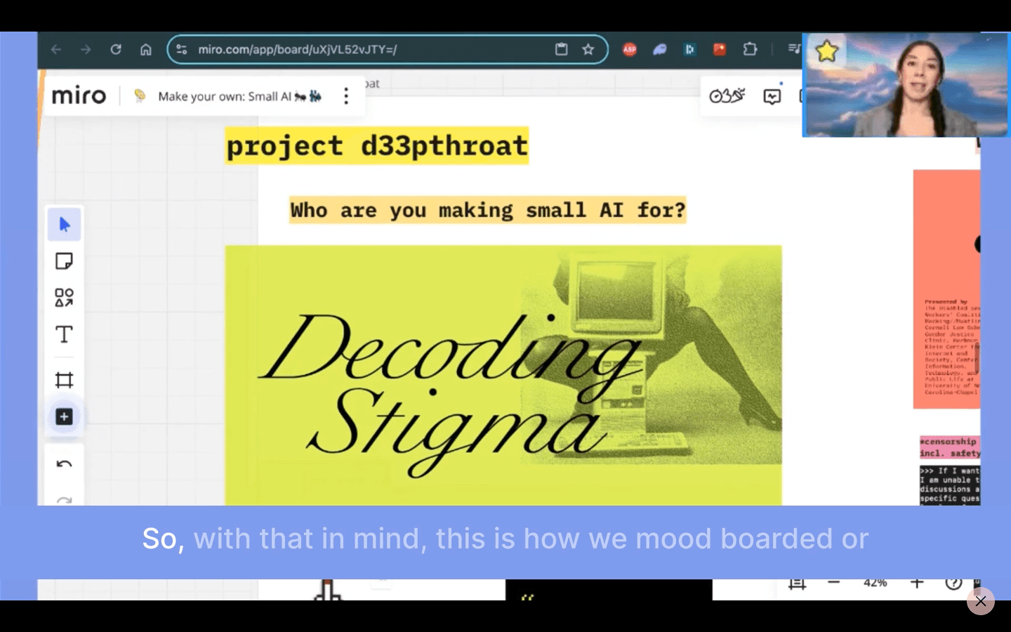 Project D33pthr0at by Gabriella Garcia & Arnab Chakravarty explored the practical possibilities of applied Small AI, with a specific focus on creating resources for sex workers facing censorship and misrepresentation in mainstream AI platforms. This residency investigated critical socio-technical questions that are often overlooked in AI development.