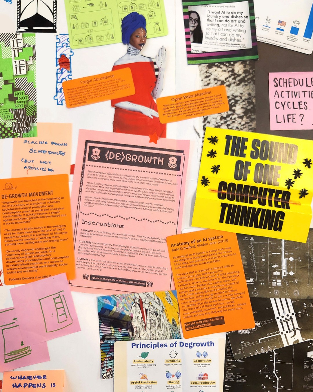 As part of Small AI research led by Nadia Nadesan, we turned to the design and research practices of Linda Dounia Rebeiz and Vera van der Burg. Together, we explored AI's potential as a tool for introspection and critical reflection. How does AI shift in shape and form when infused with unique subjective realities?